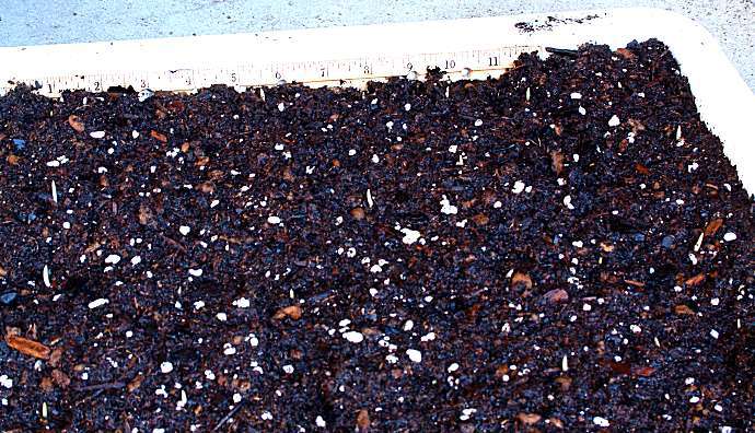 tips of the shoot buds barely protrude above the surface of the mix as
